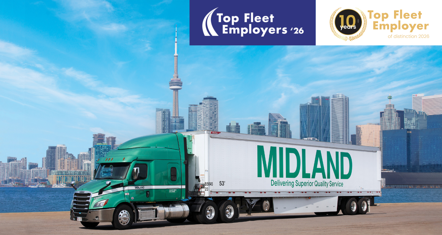 (April 2026 – Ottawa, ON) – Midland is proud to announce that it has been named a Top Fleet Award recipient for the 11th consecutive year by Trucking HR Canada. This recognition further reinforces Midland’s long-standing commitment to excellence in HR policies and practices within the trucking industry.
